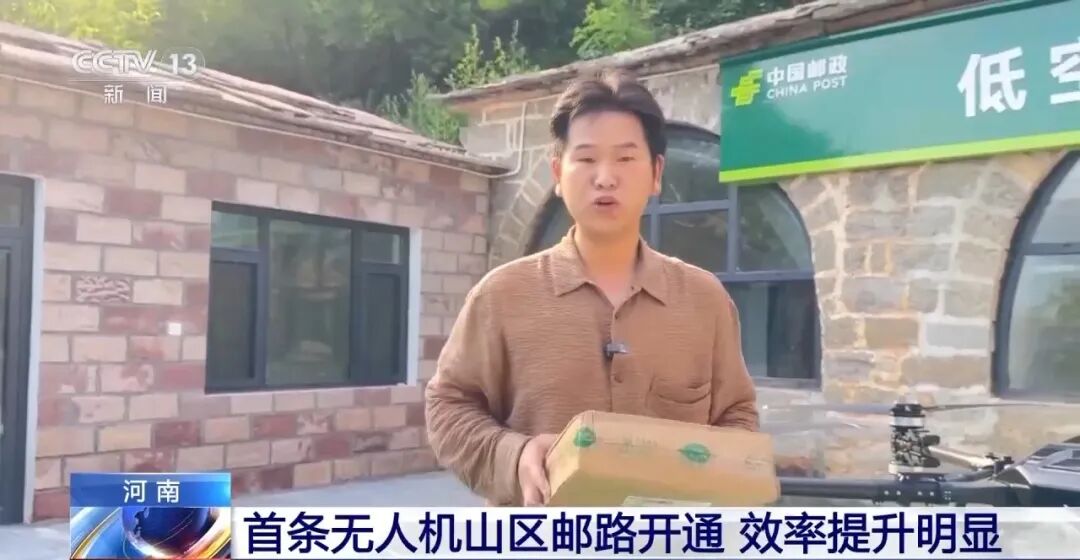 近日,河南省首条无人机邮路在安阳市太行山区正式实现常态化运营,为山区居民带来极大便利,也为解决偏远地区物流“最初一公里”和“最后一公里”难题提供了新思路。在安阳市林州市石板岩镇,一架架无人机有序起降,执行着邮件和货物的运输任务。这些无人机从石板岩镇邮政支局出发,飞往周边海拔较高、交通不便的村庄。总台记者 李恩浩:这里是海拔1100多米的上坪村,这批快递是刚刚从石板岩镇的分发点运输上来的,以往村民往返石板岩镇,步行的话需要耗费整整4个小时,如今无人机邮路开通之后,仅需要7分钟,山下的快递就可以运送到村里来,可以说效率是大大地提升。