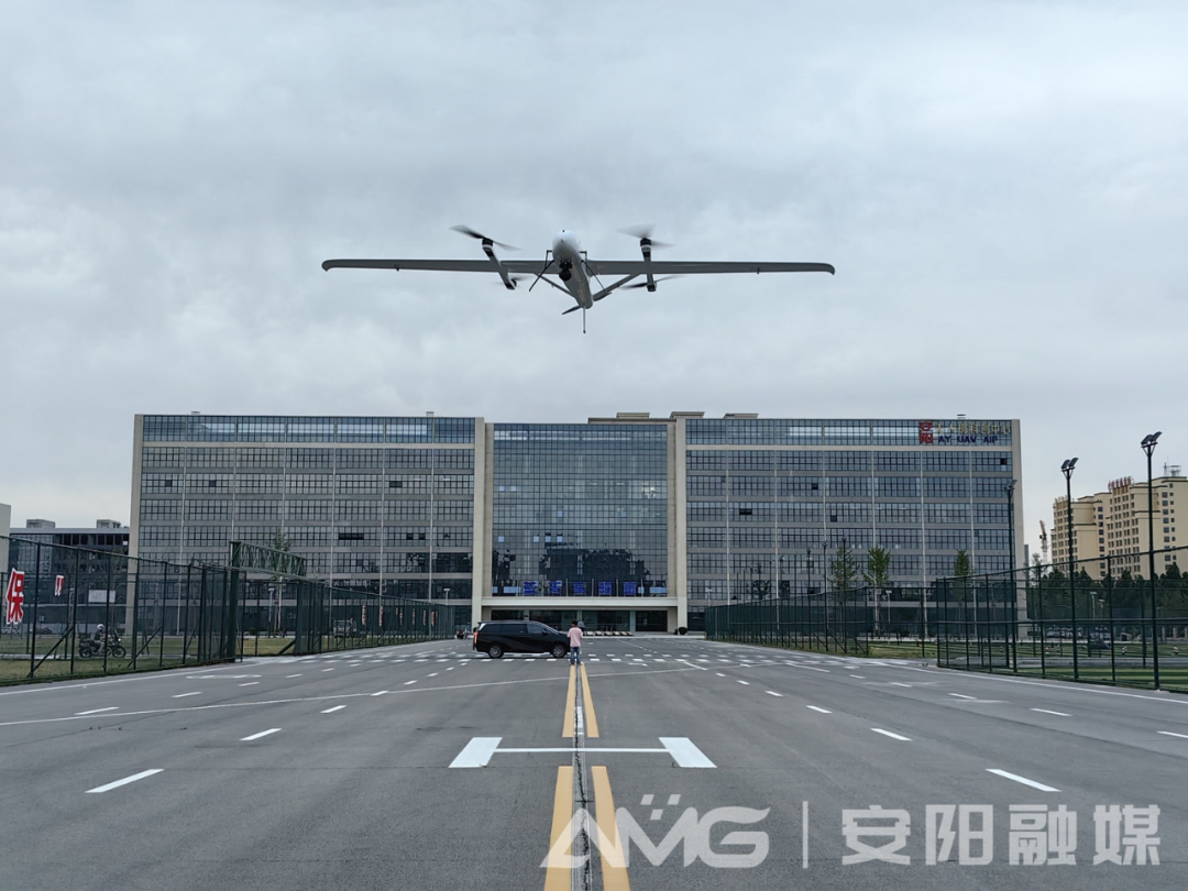安阳无人机产业园生产的新型无人机进行试飞(安阳融媒记者 张俊军 摄)