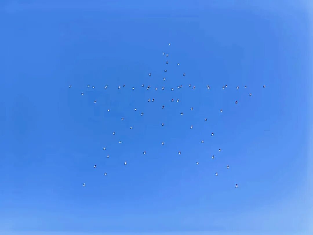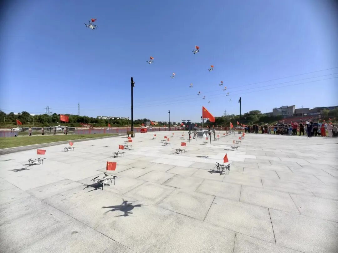 为庆祝中华人民共和国成立75周年,10月1日上午10时30分许,在与殷墟隔河相望的安阳洹河月亮岛上,一场震撼的“无人机快闪”表演正在上演。