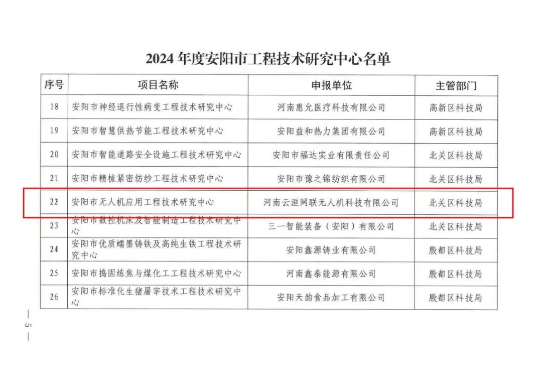 河南云洹网联无人机科技有限公司,作为一家专注于无人机应用研发与服务的高新技术企业,凭借其在低空智联网领域的卓越表现和科技创新实力,承担建设的安阳市无人机应用工程技术研究中心成功获批。这一认定不仅是对公司技术实力和研发能力的高度认可,也是对公司在无人机领域所做贡献的充分肯定。