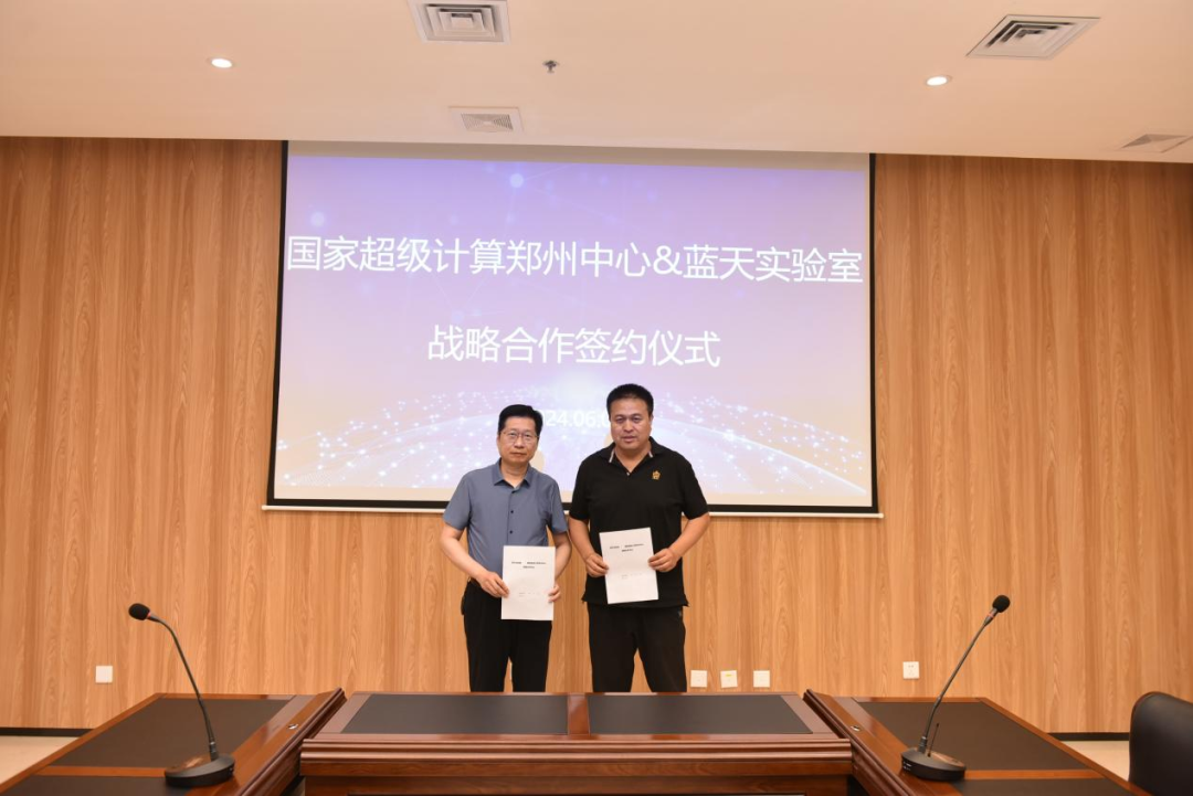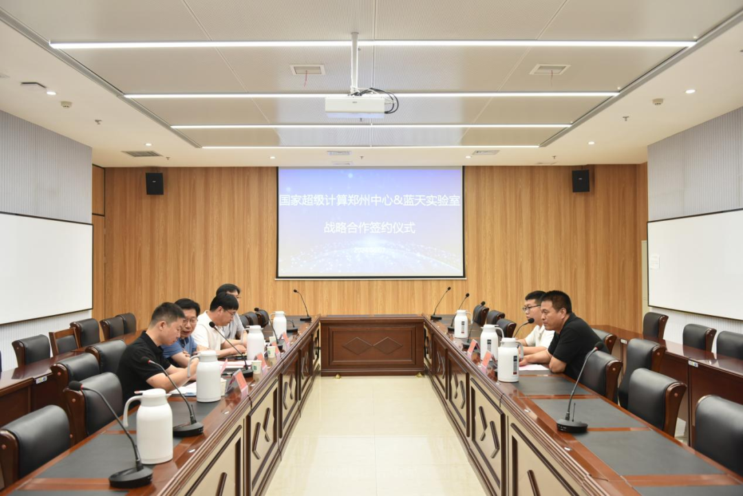 6月7日上午,蓝天实验室筹建办副主任谢利军一行到国家超级计算郑州中心座谈交流,并就相关科学领域与郑州中心达成战略合作意向,签订初步战略合作协议。郑州大学计算机与人工智能学院党委书记、国家超级计算郑州中心主任商建东,副主任郭恒亮出席并讲话,双方有关部门负责同志参加座谈交流活动。
